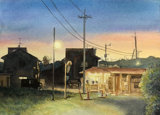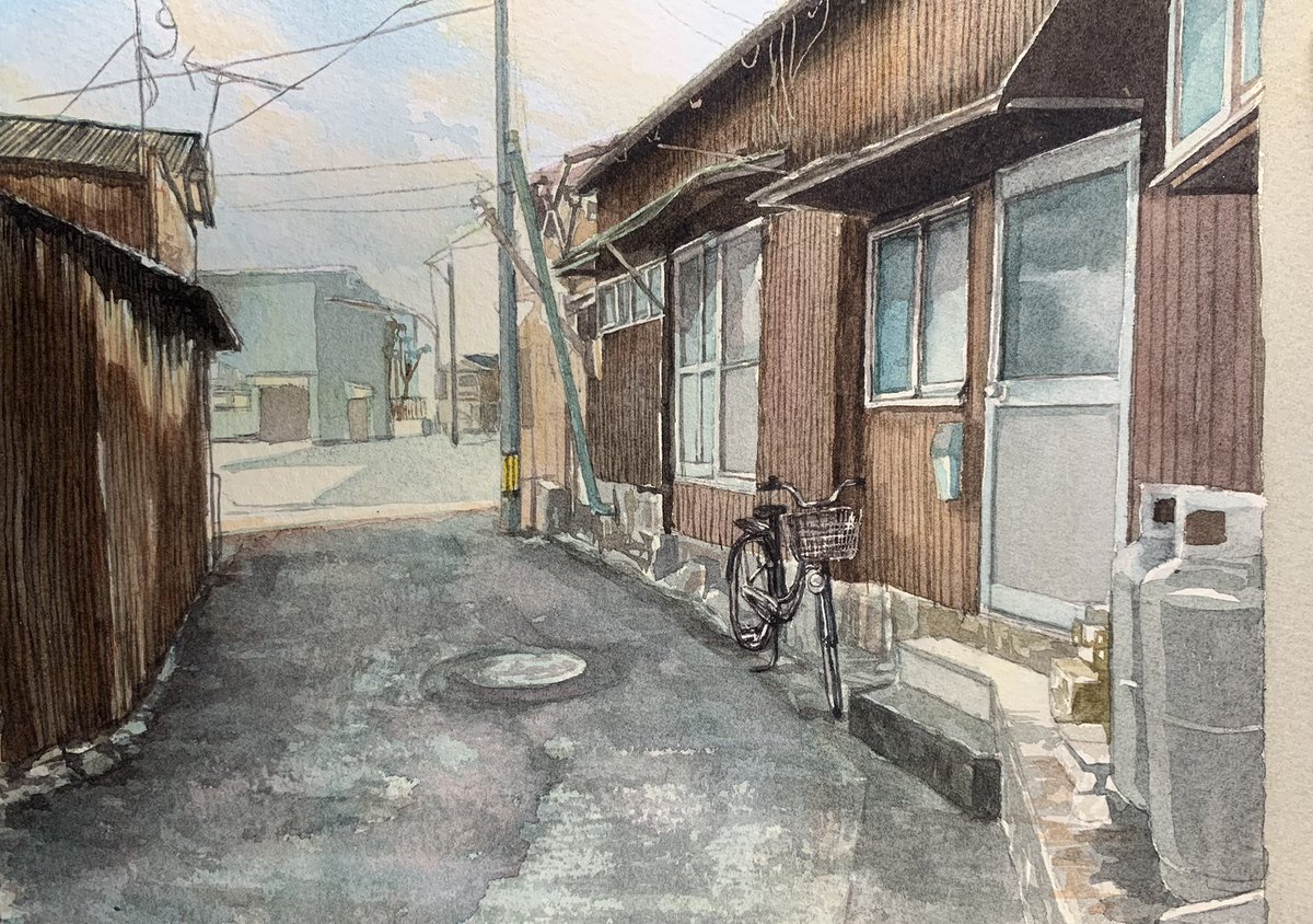 #ゴールデンウィークSNS展覧会 #絵描きさんと繋がりたい #水彩画 🏮夕暮れの時間を描いています🏮