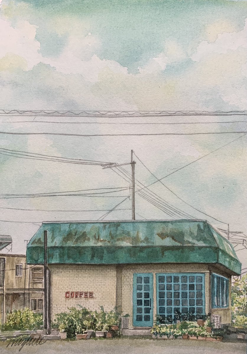 いつの日か立ち寄った喫茶店。 #水彩画 #絵描きさんと繋がりたい