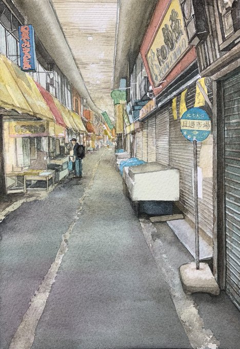 いつなくなるかわからない。 #旦過市場 #水彩画