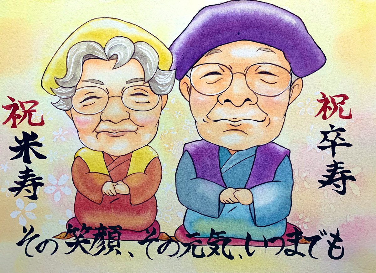 10 187 年明けとともに長寿のお祝い制作🎉 おじいちゃん、おばあちゃんおめでとう🥳 #水彩画 22/01/01 21:43