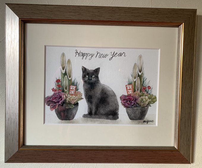 干支に入れてあげました🐈⬛ #水彩画 #あけましておめでとうございます