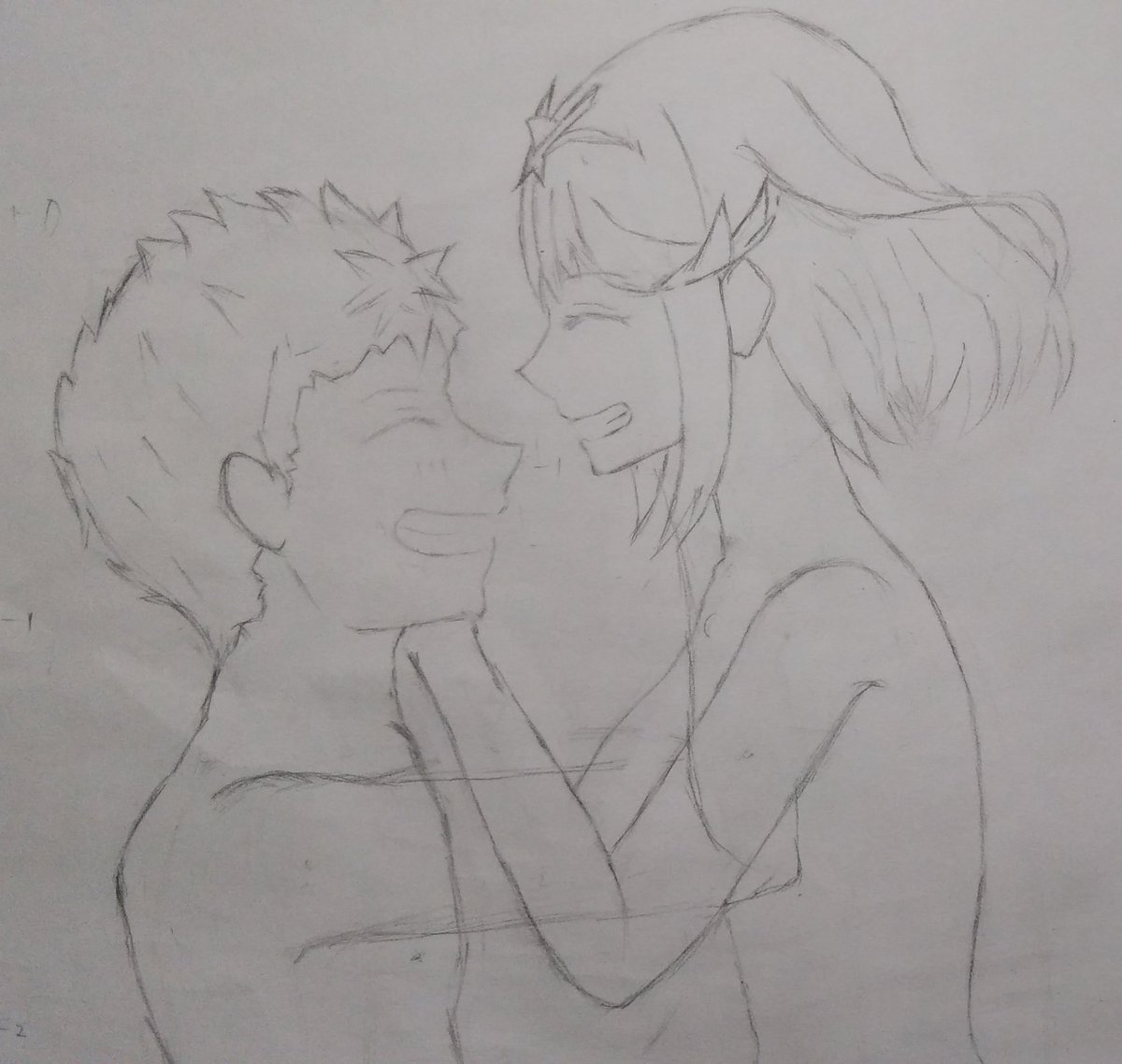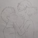#イラスト好きさんと繋がりたい #絵師さんと繋がりたい ~アイコン用イラスト作成①~ とりあえずデジ絵の前に、下描きをアナログでアタリをとってみました。 アイコン用にしては糖度が高くなる様な気がしますが…。 それとレックスとホムラの身長差を表すの地味に難しい…ですね。