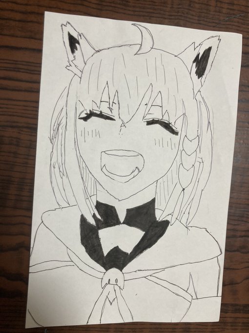 授業中にうろ覚えでかいた白上 指むずくて授業に奮闘してたw #絵フブキ