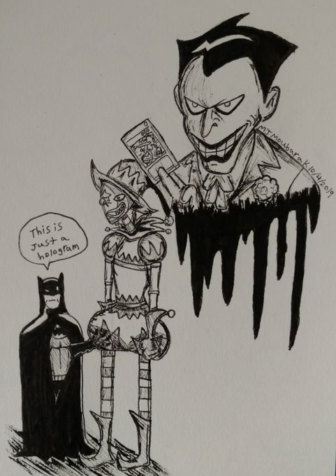 Day 4 of Inktober, decided to weasel in the Joker since the movie is out. Also trying to mess with people using a hologram sounds like something he would do. #yugioh #setokaiba #kaiba #saggithedarkclown #Holograms #clowns #Batman #TheJoker #Thejokermovie #DC #Inktober2019
