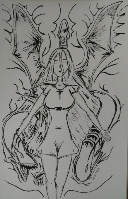 Day 16 of Inktober: Goddess of Sweet Revenge. #yugioh #kaiba #setokaiba #Goddess #inktoberday16 #Inktober2019 #KONAMI #kazukitakahashi #SPOOPY #SpookySzn #spookyseason #cardgames #TCG #OCG
