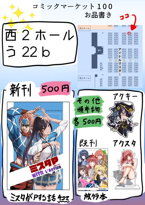 あなたのサークル「ネクロフォビア」は、コミックマーケット100で「日曜日西地区 "う " 22b」に配置されました!コミケWebカタログにてスペース配置場所公開中です! webcatalog.circle.ms/Circle/Map/162… #C100WebCatalog