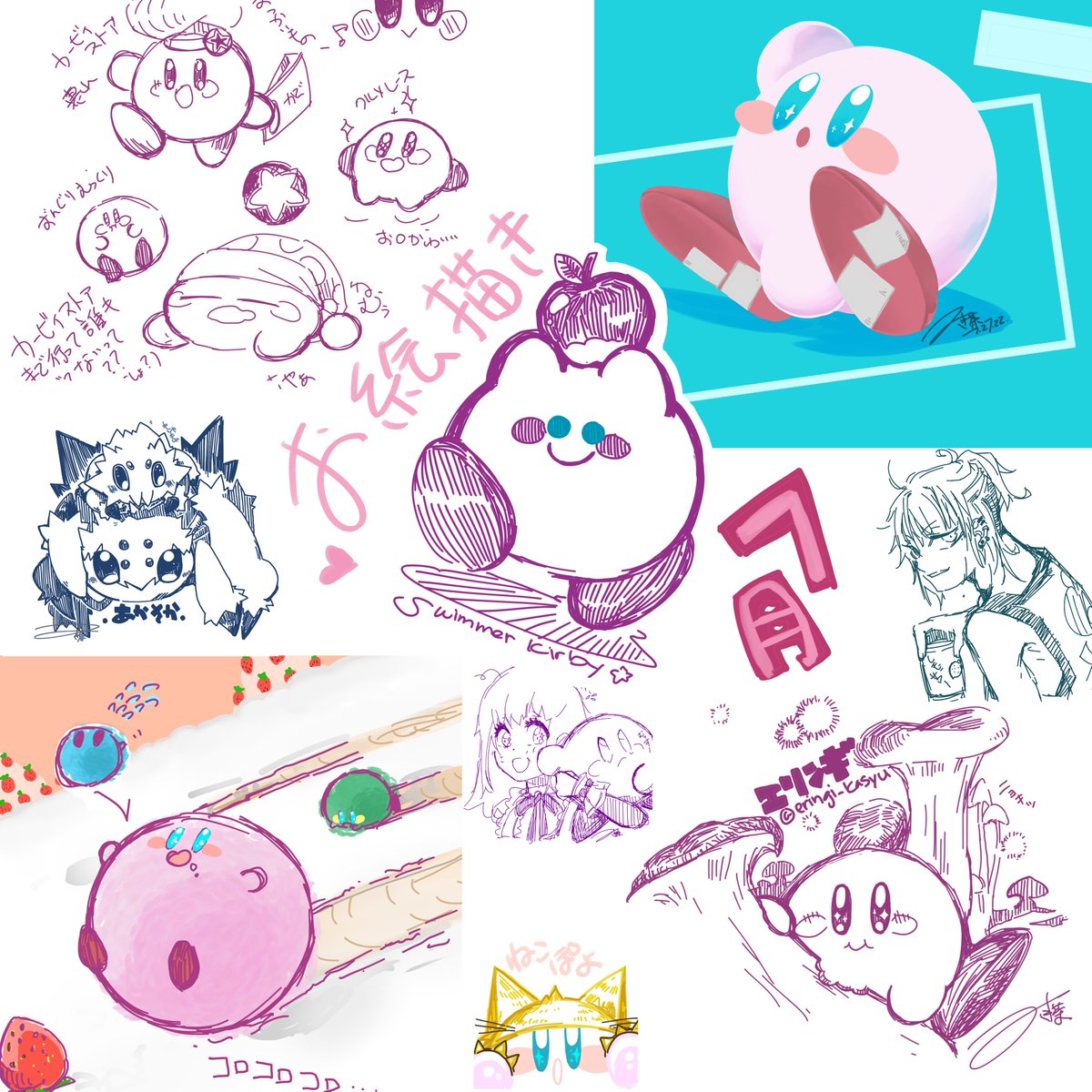 #今月描いた絵を晒す 落書きとかが多い!カービィちゃん、いい感じのいくつかできたから、まぁ、いっか笑