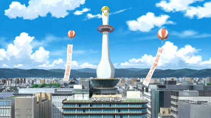 大空建設の技術力は京都一ィィィィーーーーッ! 大空スバルさんの配信に出てくるアヒルの首が京都タワーに見えて仕方なかったので、大空建設が京都駅の真ん前に自社ビルを構えている世界線で描いてみました。僕の記憶では長い首だったんですが改めて見るとそうでもない…😰 #プロテインザスバル