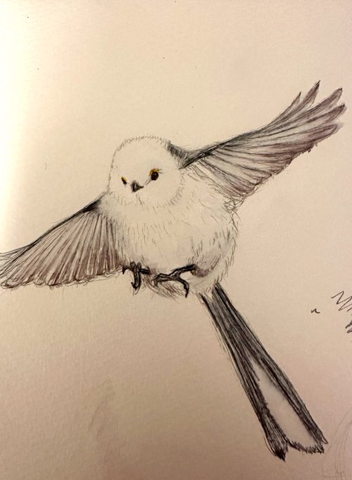 シマエナガちゃん練習 #ガラスペン #アナログイラスト #アナログ絵 #シマエナガ #野鳥 #インク沼 #文具で描く 🐸 #鳥好きさんと繋がりたい #絵描きさんと繋がりたい #絵柄好みって人にフォローされたい