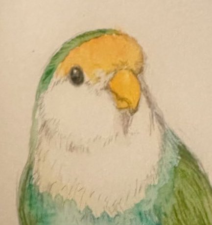 我が家の鳥げんちゃん インクの種類によって溶け具合全然違うから難しいな〜… #ガラスペン #アナログイラスト #アナログ絵 #コザクラインコ #うちの子 #インク沼 #文具で描く 🐸 #鳥好きさんと繋がりたい #絵描きさんと繋がりたい #絵柄好みって人にフォローされたい
