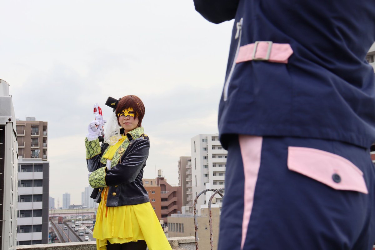 14 29 【cosplay】🎩vs🚨 🎩💛:@MSzml 🚨🩷:@mkcs01 📷:@ryo_trip studio:@airoute_s ※屋上撮影許可済み 23/04/20 20:24
