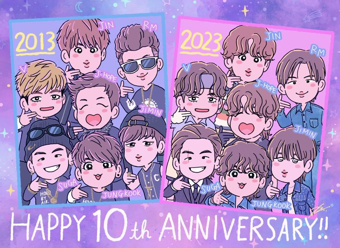 𝟮𝟬𝟭𝟯 ▶︎ 𝟮𝟬𝟮𝟯 🎂💜 おめでとうございます🎉🥳🍾🥂🎊 #2023BTSFESTA #BTS10thAnniversary #방탄10주년ㅊㅋ #btsfanart