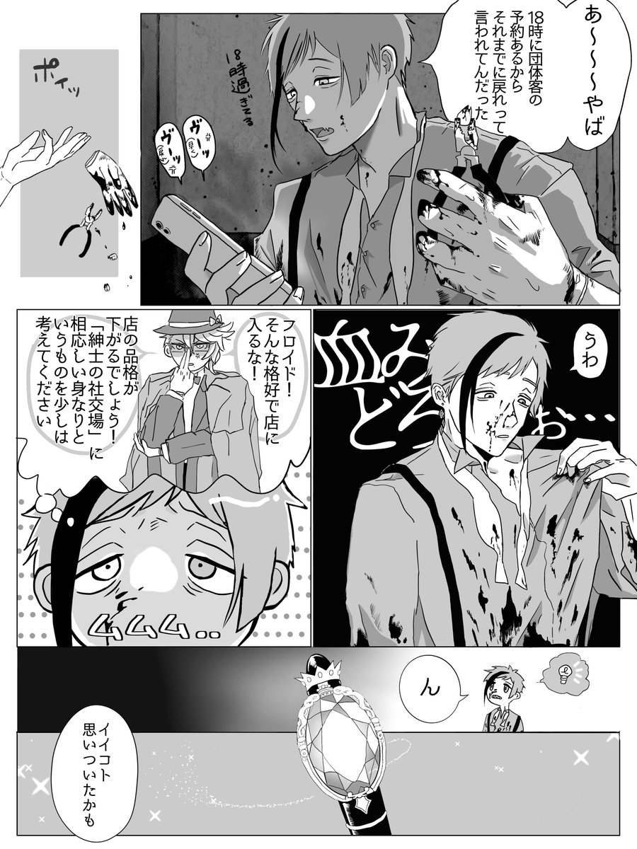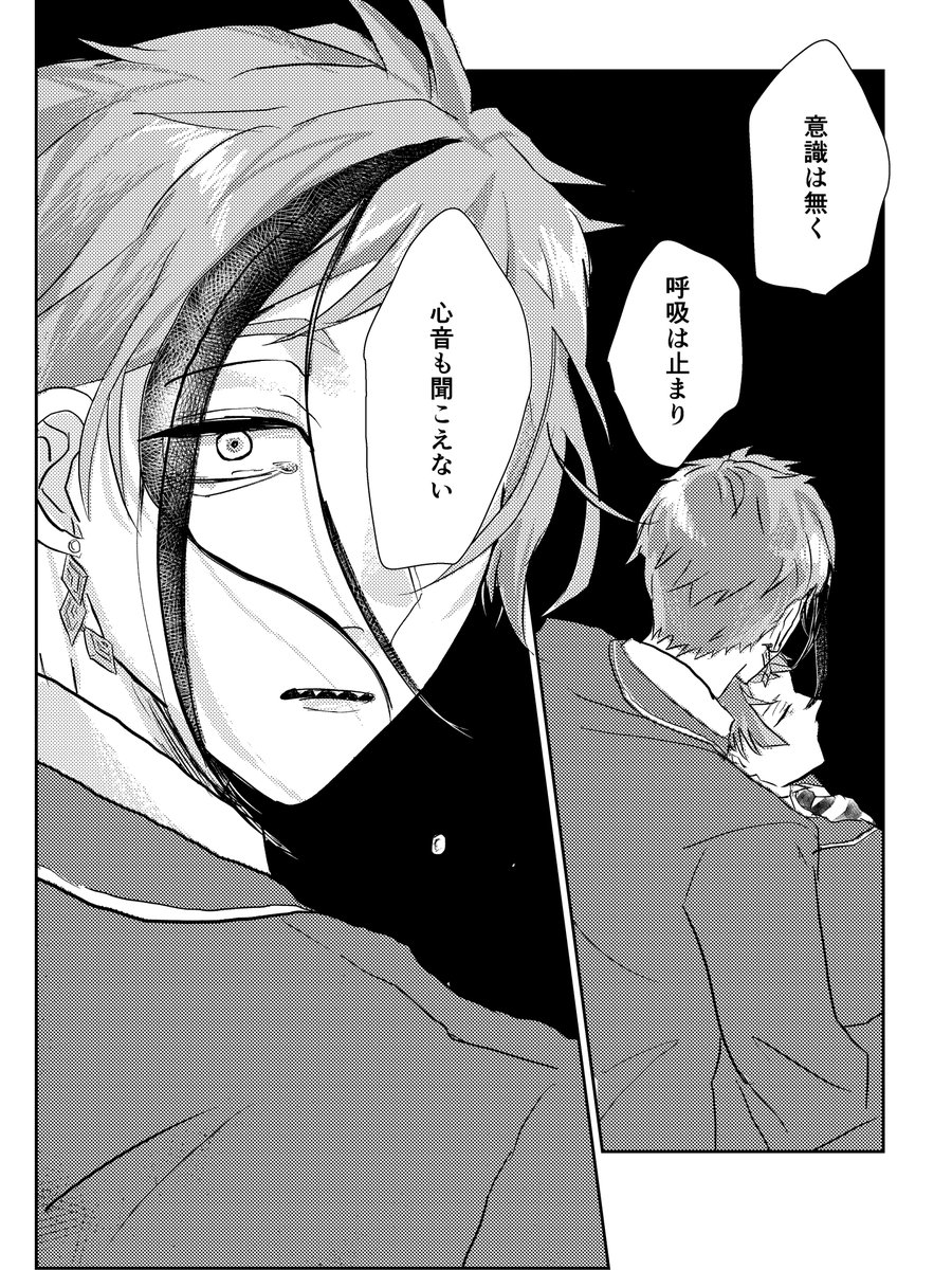 34 181 ⚠︎血、暴力表現、捏造設定 8月に頒布した再録本の描き下ろし漫画です(1/2) 22/11/05 23:23