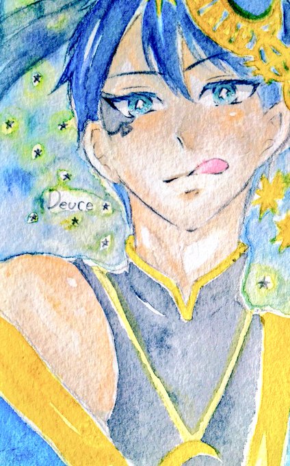 3 17 デュースくんも来てくれるといいなぁ。 装飾品一生懸命描いたのに塗ったら潰れました。 #ツイステファンアート #透明水彩でtwstファンアート 20/08/24 08:26