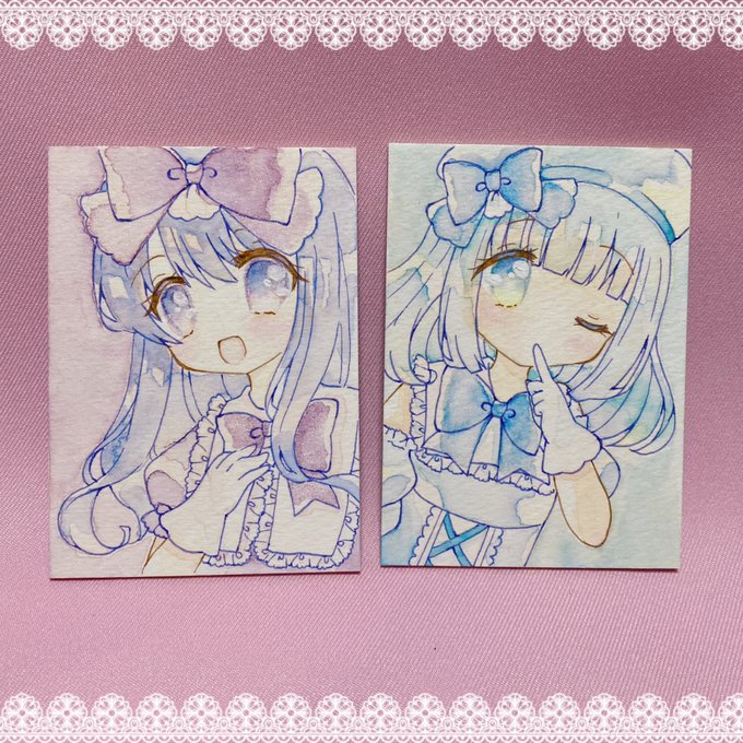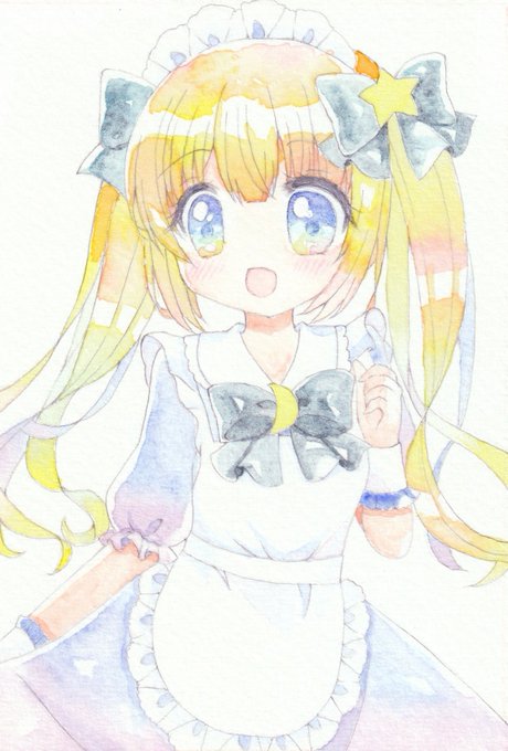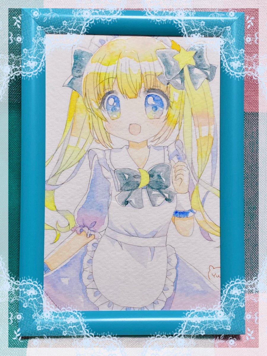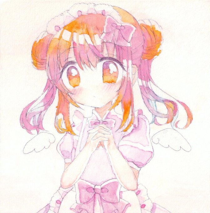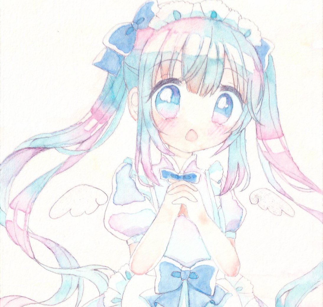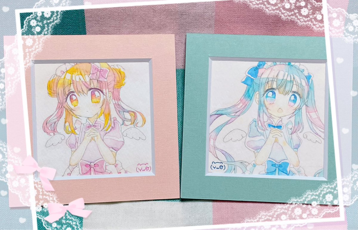 🩷てんしメイドちゃん🩵 ピンクがお姉ちゃん、水色が妹ちゃんです✨ こちらもGallery glad.様の「ようこそ!ドリームメイド展3」へお送りした作品です✨ #ドリームメイド展3 #イラスト #透明水彩