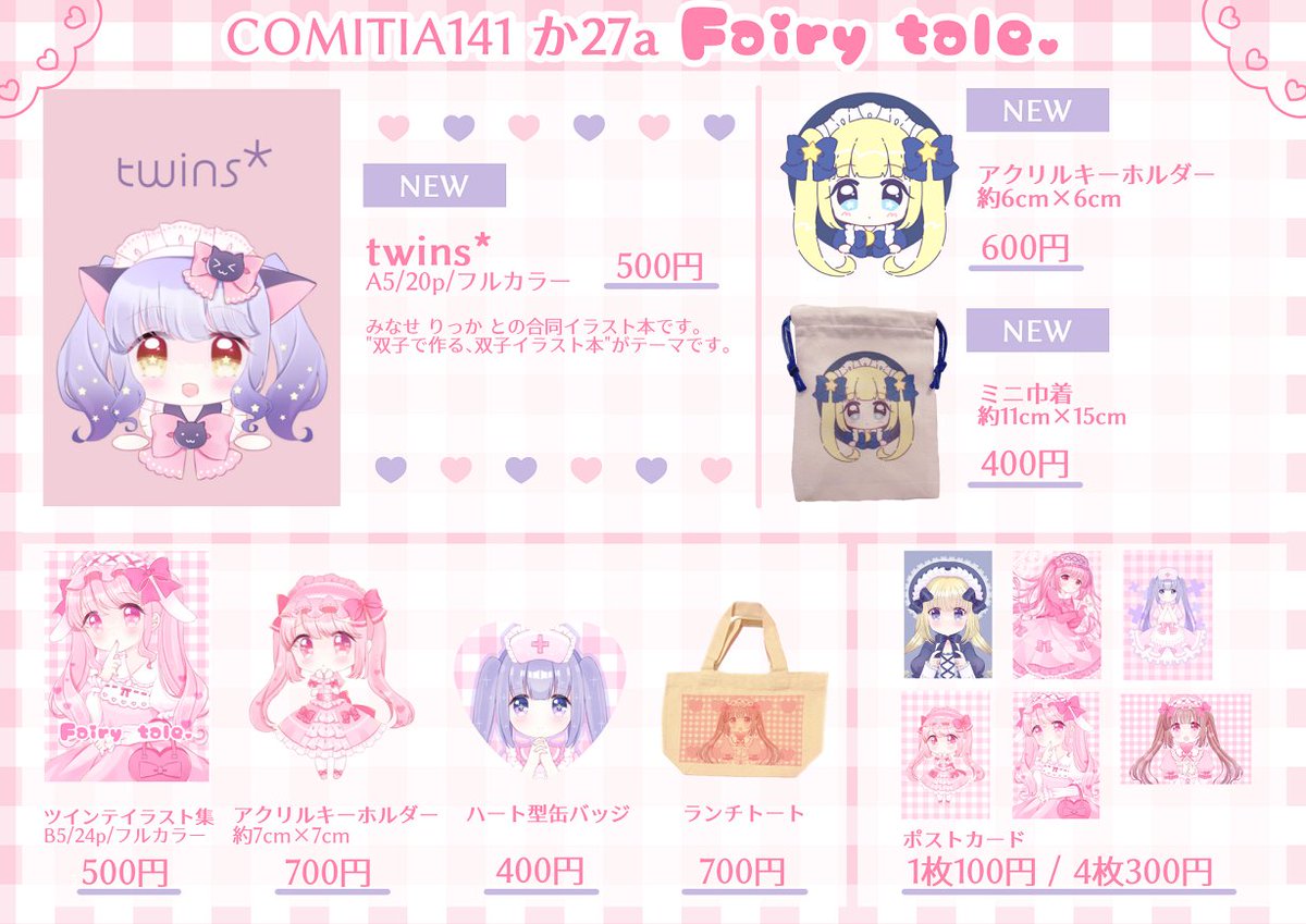 9/4(日) コミティア141のお品書きです🎀 【か27a】Fairy tale. コミティアへのサークル参加は初めてです✨ よろしくお願いします! 新刊のサンプル等はツリーに繋げます▶ #コミティア141 #COMITIA141