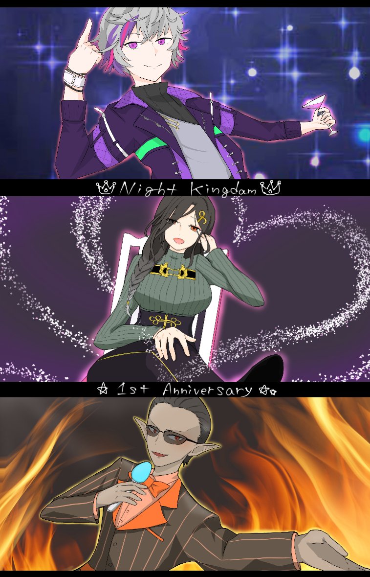 夜王国1周年おめでとうございます! 3人のおかげでこの1年大変笑わせていただきました。これからも応援しております! #夜王国 #夜王国1周年 #絵スコート #巴絵 #推す画ール