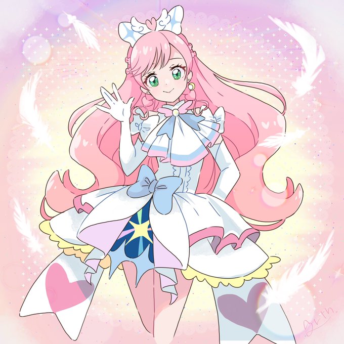 キュアプリズムちゃん可愛すぎる💗 頭のハート、髪飾りの一部かと思ったけどアホ毛なの? #イラスト #プリキュア #ひろがるスカイプリキュア