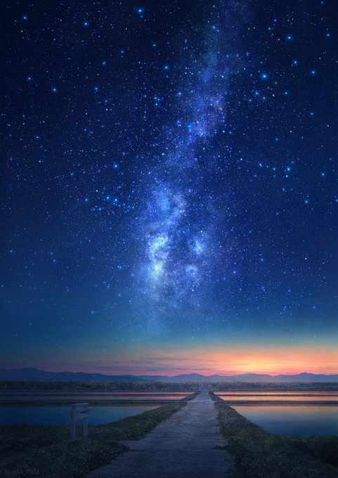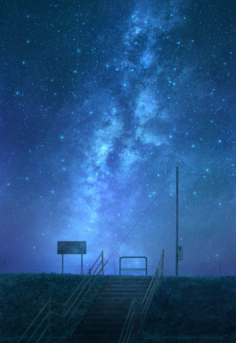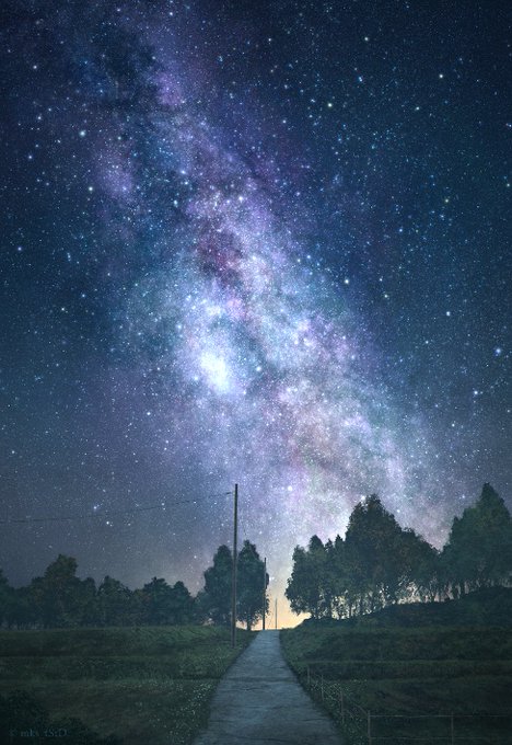 帰路で見た空 風景イラストです。