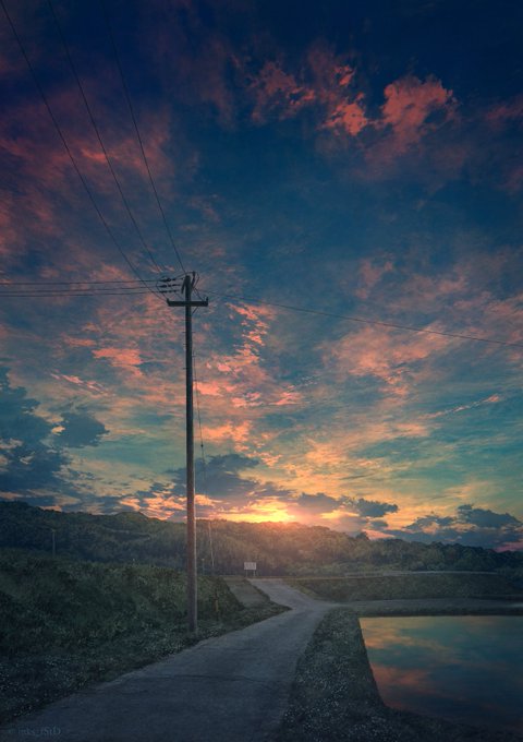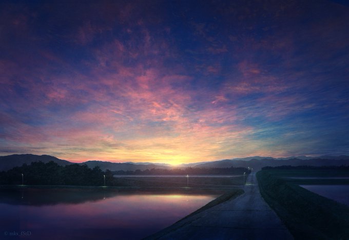 #今年も残りわずかなので今年一番伸びた絵を貼る 帰り道の夕焼けの絵でした。