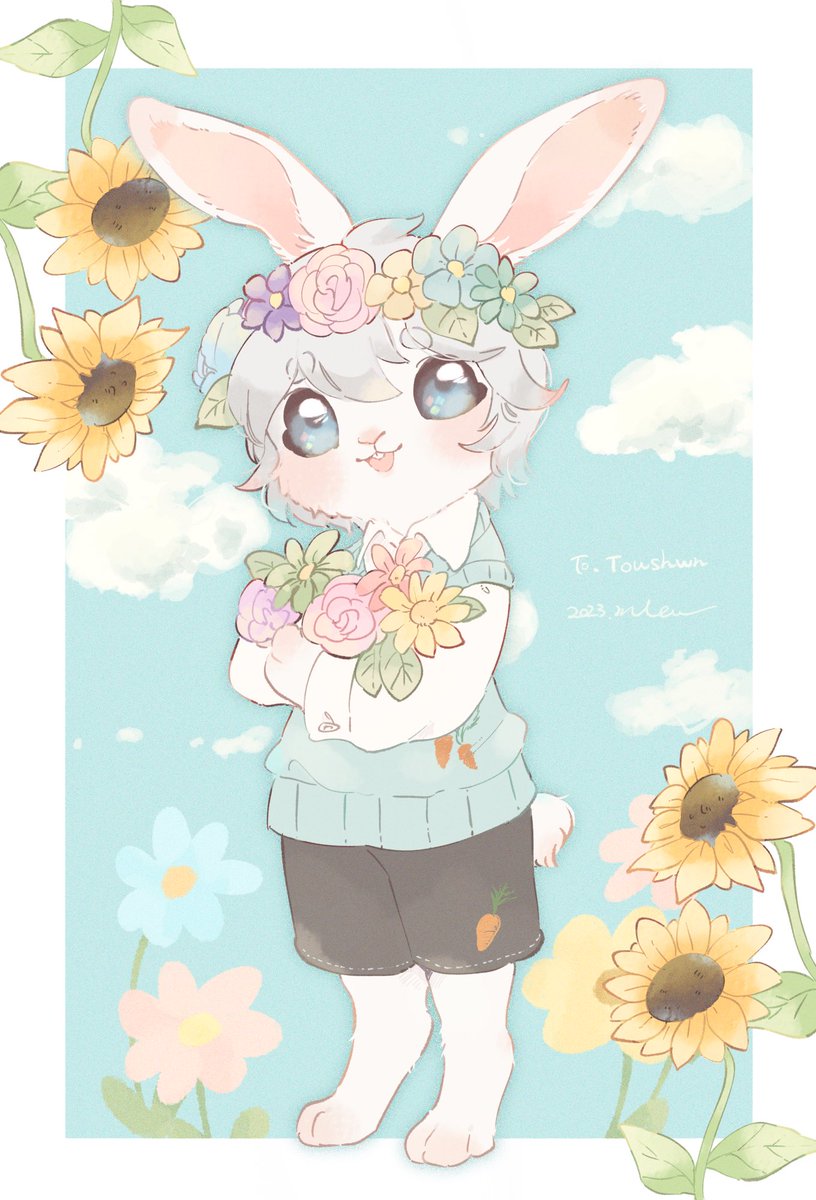 36 123 依頼者さんの大切なファーソナさんを描かせていただきました🐰お花に囲まれたファーソナさん、楽しく描かせていただきました!ありがとうございました✍️💐 #skeb #commission 23/08/04 11:40