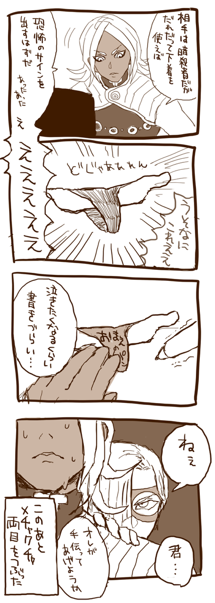 51 214 「おまえのパンティーだ!」「受胎完了!」 #JOJO版深夜の真剣お絵描き60分一本勝負 メローネとエニグマ君こと宮本輝之助君。あれはジョジョ二大セクハラ攻撃だと思いました。没ネタのおまけつき 15/01/15 22:14