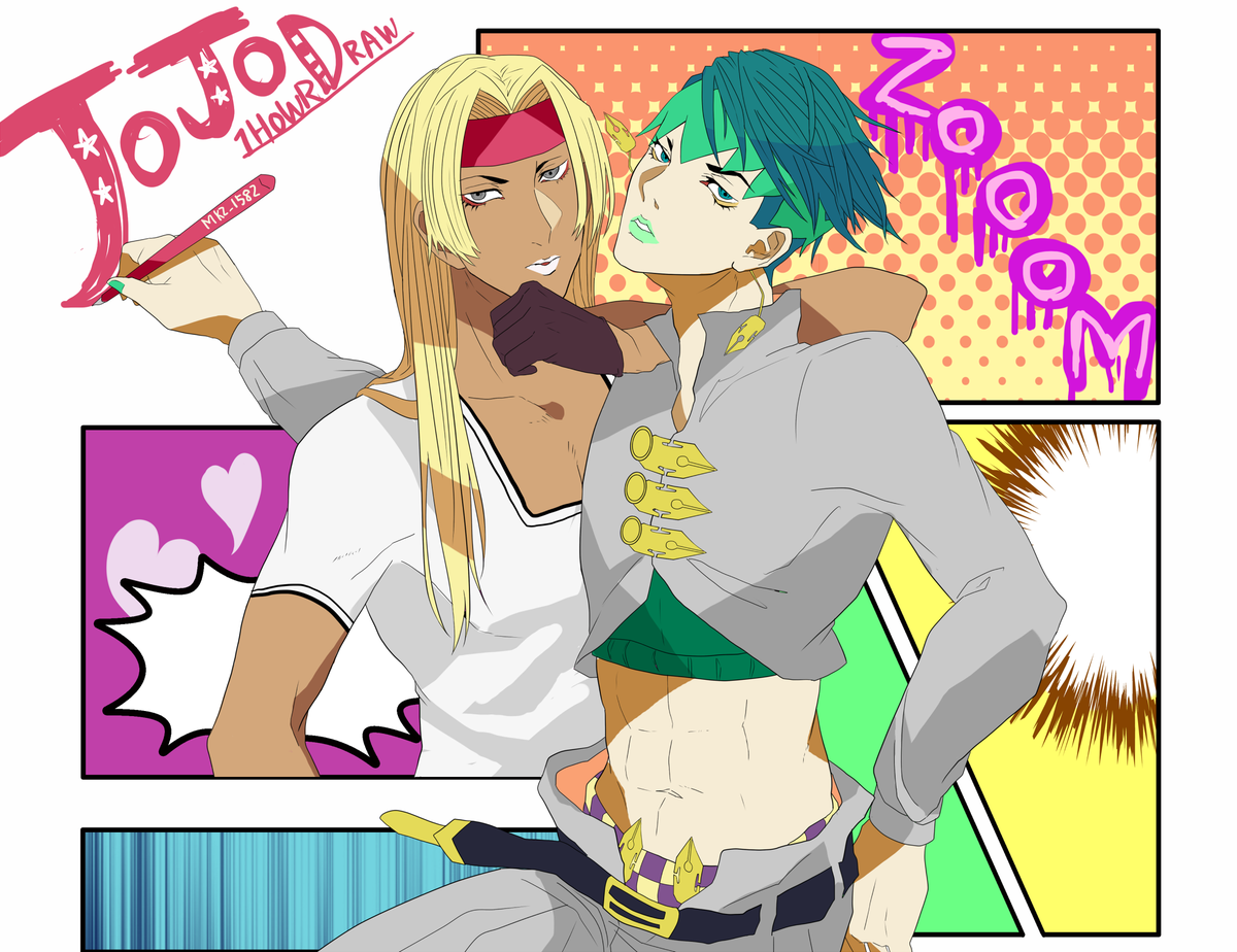岸部露伴先生とティッツァーノ! #JOJO版深夜の真剣お絵描き60分一本勝負 遅刻しただァー!ダニー描けなかっただァーッ!!でも楽しかった!
