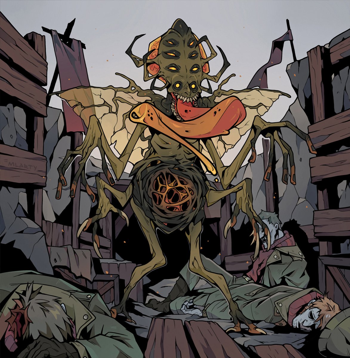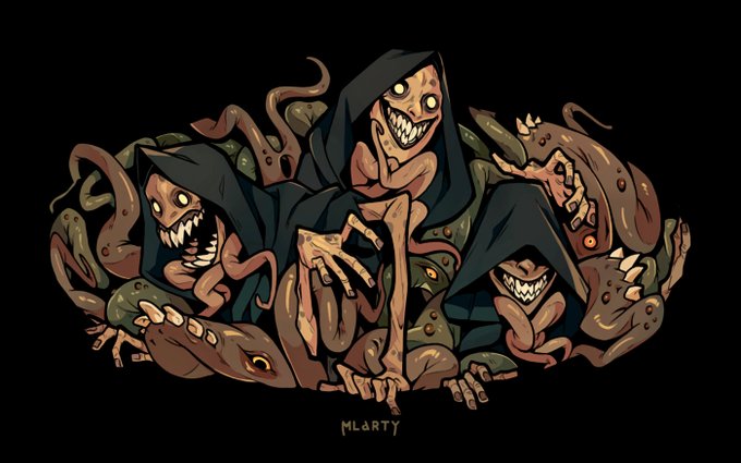 hey #PortfolioDay 🦷🩸 we're MLarty, illustrators co-authors and concept artist who love monsters and dark projects