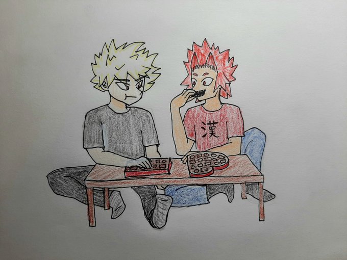 1 2 チョコを共有中🧡❤️ 遅くなってすみません!チョコを一緒に食べてる爆切を見てください! 「バレンタイン」 #爆切版ワンドロ 23/02/13 03:15