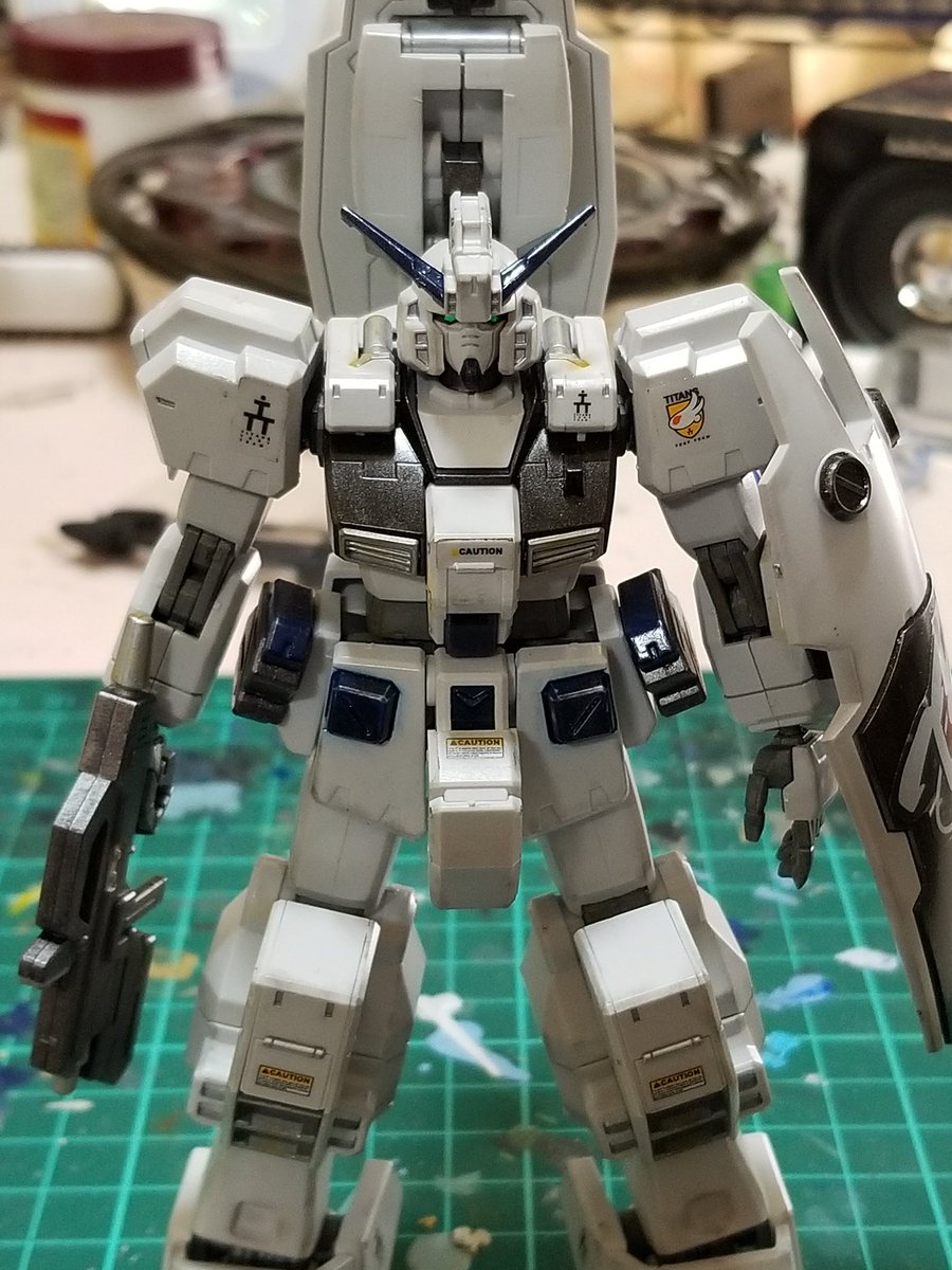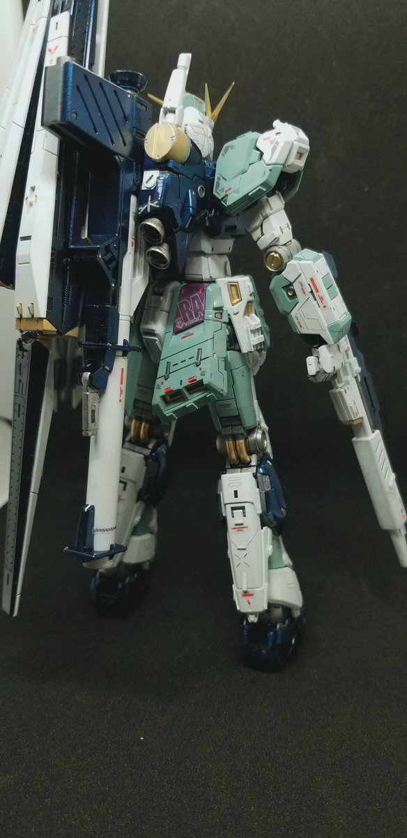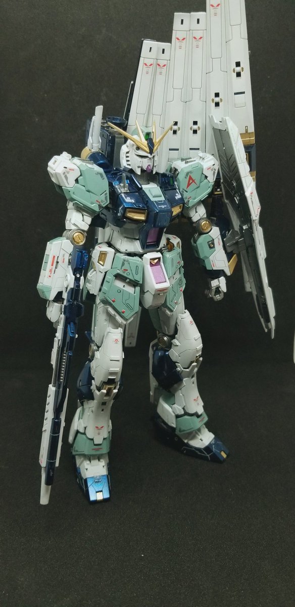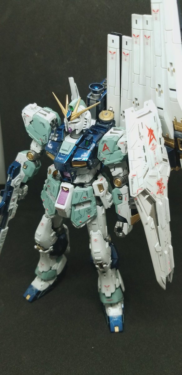 RGνガンダム完成しました(๑و•̀ω•́)و オリジナルカラーでアムロのイメージにしてみました。あといろいろと盛りました。わりと雑なところはあったけど、デザイン的には個人的にとても気に入ってます( ᵕ̩̩ㅅᵕ̩̩ ) #ガンプラ #ガンプラの画像を貼るとRTされると聞いて #νガンダム
