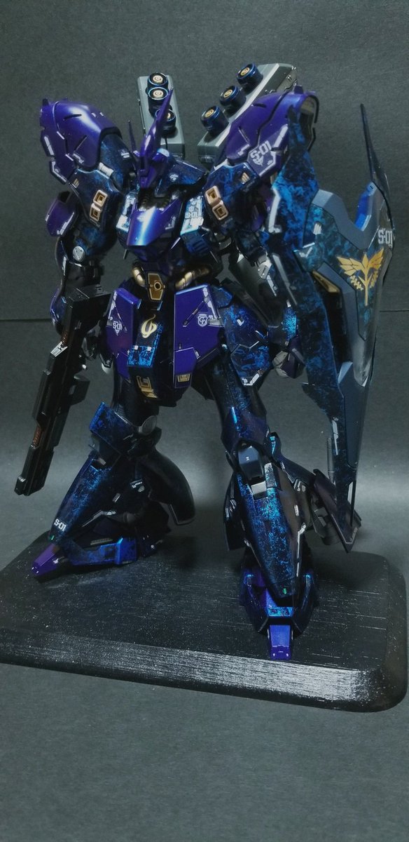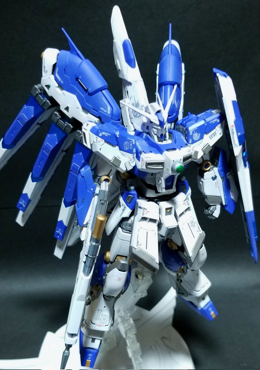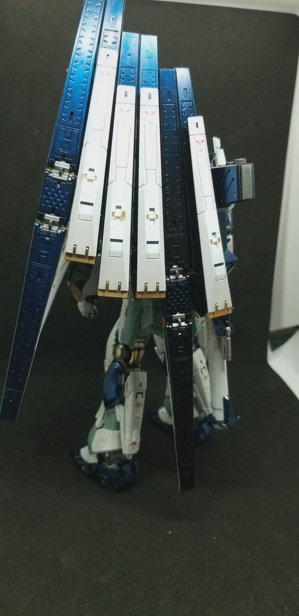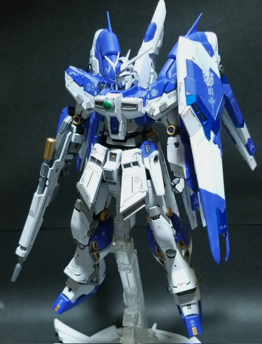 RG Hi-ν完成です。 台座はなんとなく似合う気がしただけなのであまり気にしないでください。少しスジボリとパーツを足したくらいでわりとシンプルな全塗装で仕上げました。くっそかっこいい……_:( _ ́ཫ`):_ #ガンプラ #ガンプラの画像貼るとRTされると聞いて