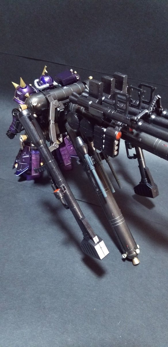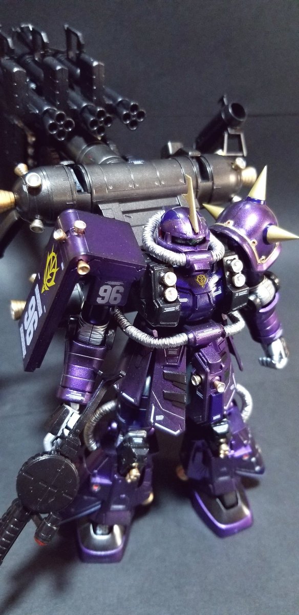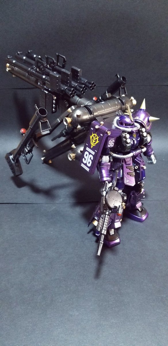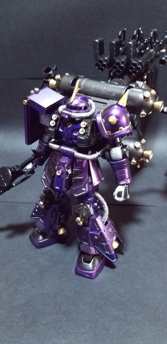 HGサイコザク完成しました(*'ω'ノノ゙ よりサイコ感を出したくてメインカラーをメタルバイオレットにしました。 #ガンプラ #ガンプラの画像を貼るとRTされると聞いて #ガンプラはどんな自由な発想で作ってもいいんだ