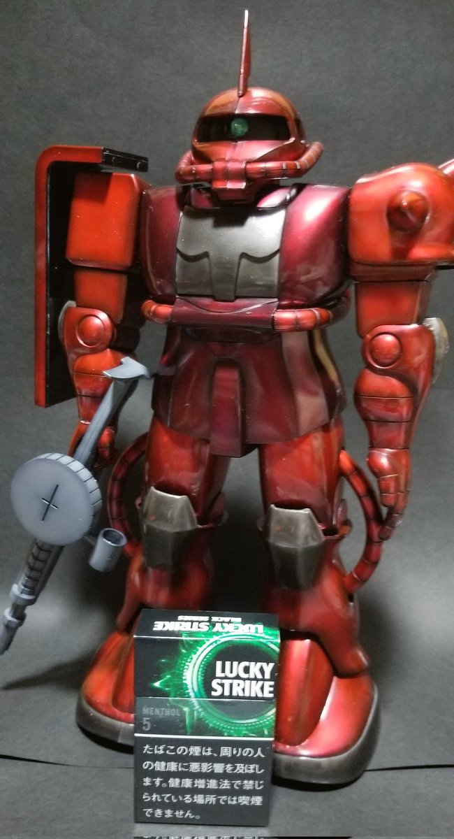 年明け一発目完成しました!旧キット1/60シャアザク!さすがにこのデカさで全塗装はしんどかった… 買ったことない人にも伝わるように比較でタバコも添えて #ガンプラ #ガンプラの画像貼るとRTされると聞いて #ガンプラ好きと繋がりたい