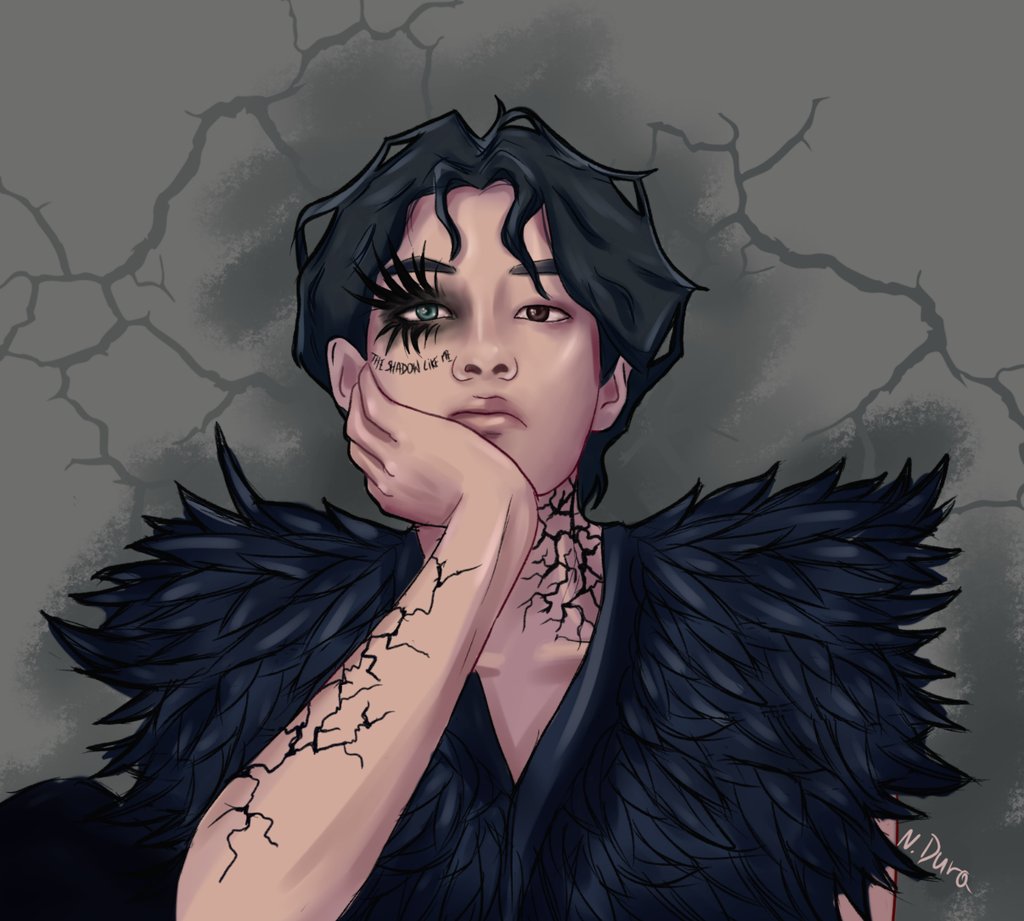 🖤 𝓣𝓱𝓮 𝓼𝓱𝓪𝓭𝓸𝔀 𝓵𝓲𝓴𝓮 𝓶𝓮. 🖤 (Kind of ON- black swan- howl's moving castle crossover) #TAEHYUNG #BTS #taehyungfanart #btsfanart #blackswan #digital #digitalart