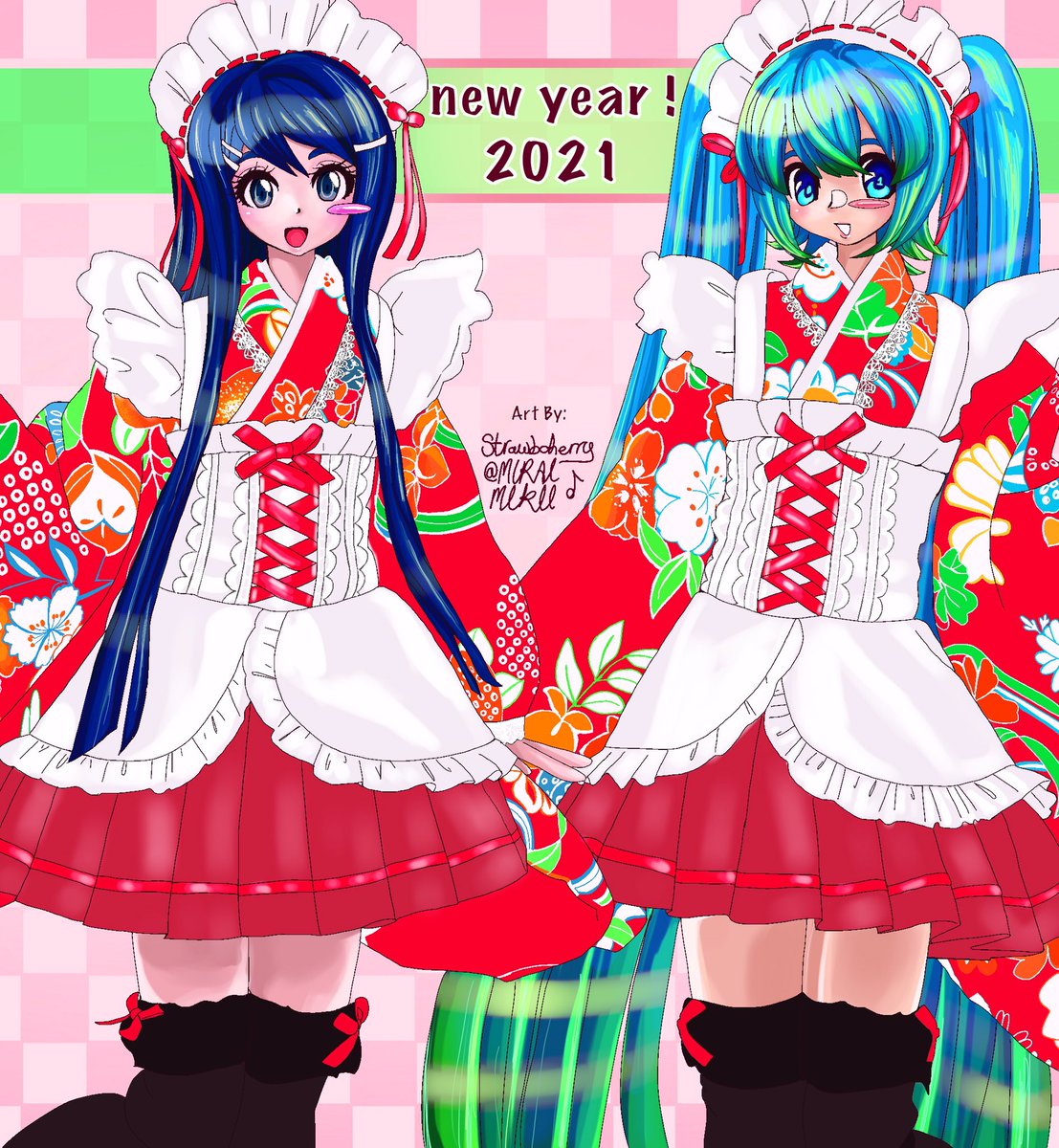 Happy New Year ! From your favorite pop sensations🎶 🎤🎙 #danganronpa #sayakamaizono #vocaloid #初音ミク