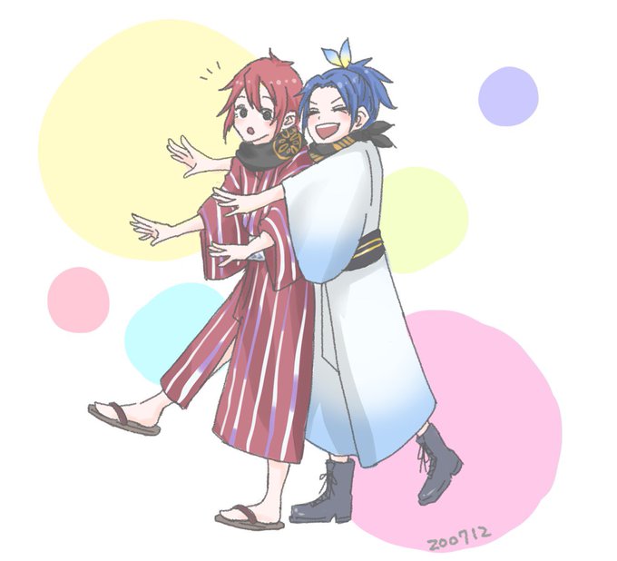 11 25 #短刀版深夜のお絵描き60分一本勝負 お題・「太鼓鐘貞宗」「信濃藤四郎」 1h+20min 鶴さんの真似してどーん!!!ってしてる貞ちゃん!!!そしてこの2人のストール組ぎゃわいい 20/07/12 23:27