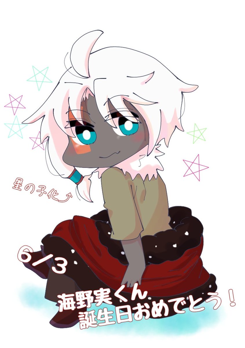 0 2 #永海の創作 #SKY゜_LightIllust ⚠️顔あり 実くん誕生日おめでとう!🏖🥳 今回は星の子化で誕イラ!꙳⋆🌟 23/06/03 20:13