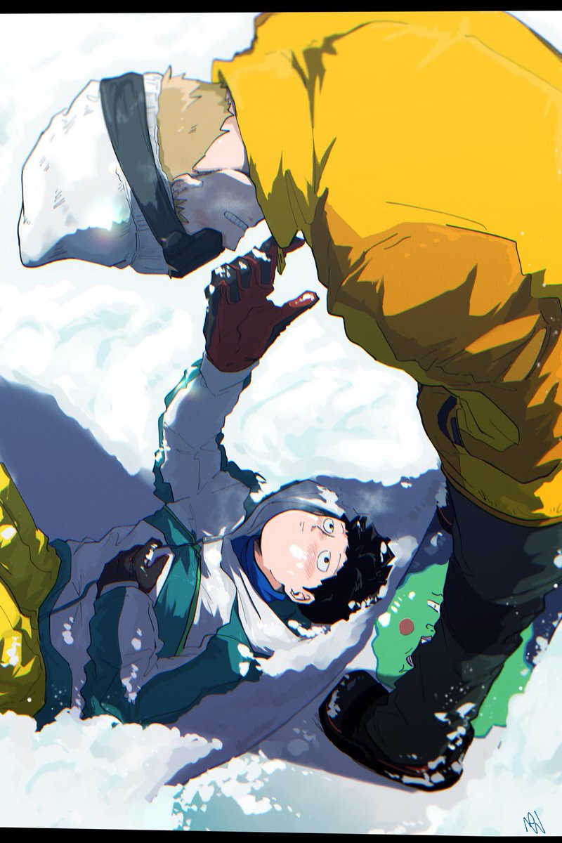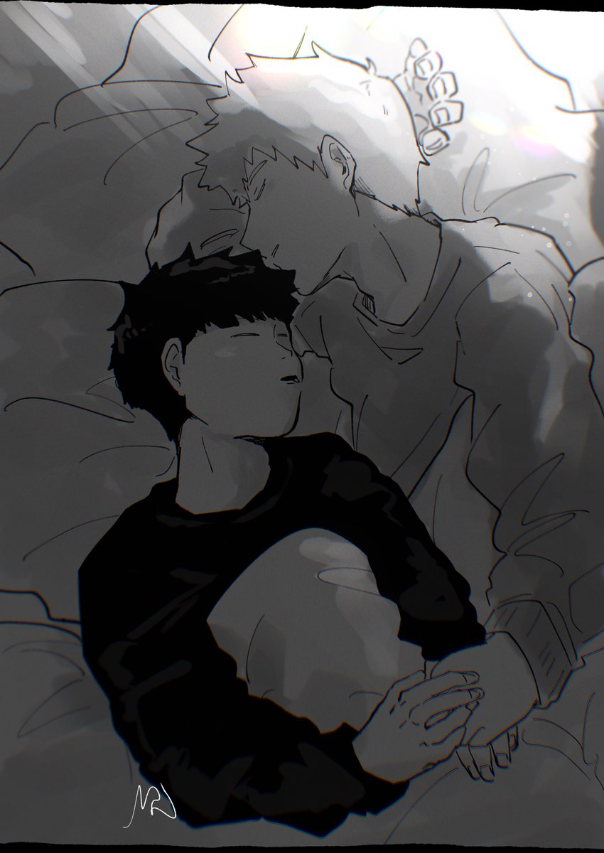 1.2.3大好きOP要素盛りつつ、師弟は月を背負って助けにくる、131ではモブくんがそうなるから祈願で2人の間に1期OP序盤の月、大好き街背景、3期OPの指差し、それぞれの指本数の時に主役になる回がある3人、大好きな言葉がタイトルに隠れてるって演出が天才だなってなる2期OPの… みたいに詰めて描いた😂