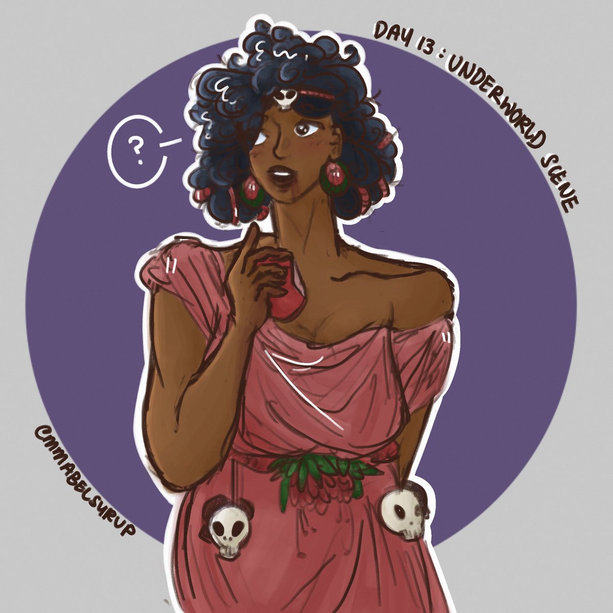 🌿day 13: underworld scene 💀🌺 persephone eating the pomegranate ‐ rts appreciated!! #inktober #inktober2021 #godlytober #persephone