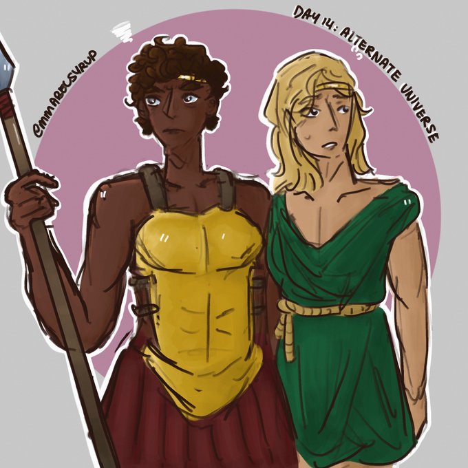 🌿day 14: alternate universe 🏹 prince patroclus and his companion, achilles – rts appreciated :3 #godlytober #inktober #inktober2021 #tsoa #patrochilles