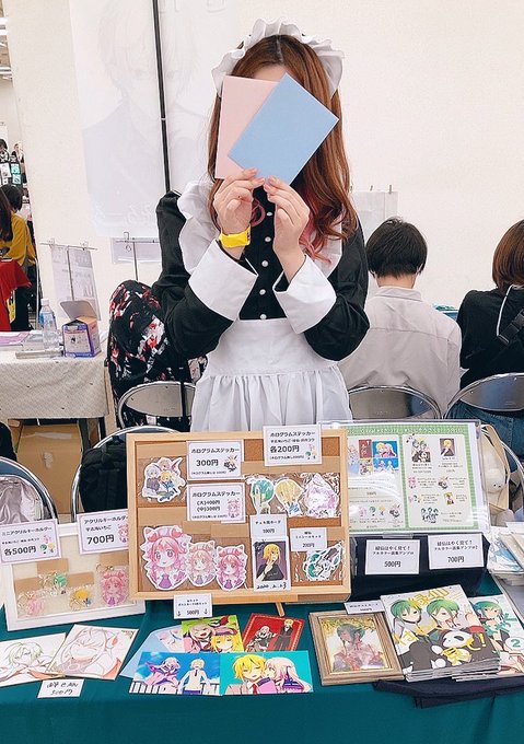 本日よろしくお願い致します〜! 卯月コウ、魔界ノりりむ、緑仙、海志海いちご、ルザキン、 スペース【き-37】です!グッズと既刊です! #にじそうさく07