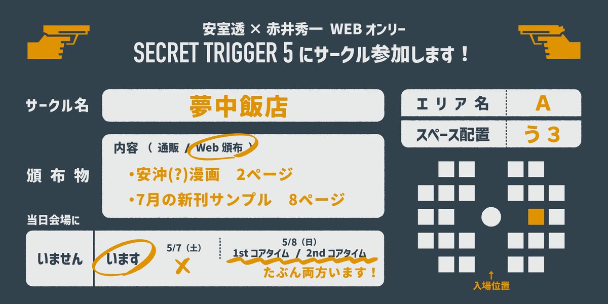 12 32 シクトリ5、参加させていただきます! スペースはAう3で、漫画と新刊サンプルを展示しています。 よろしくお願いします~🥰 #シクトリ5 #シクトリ5お品書き 22/05/04 21:46