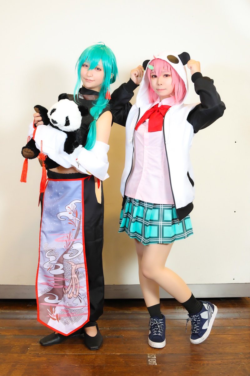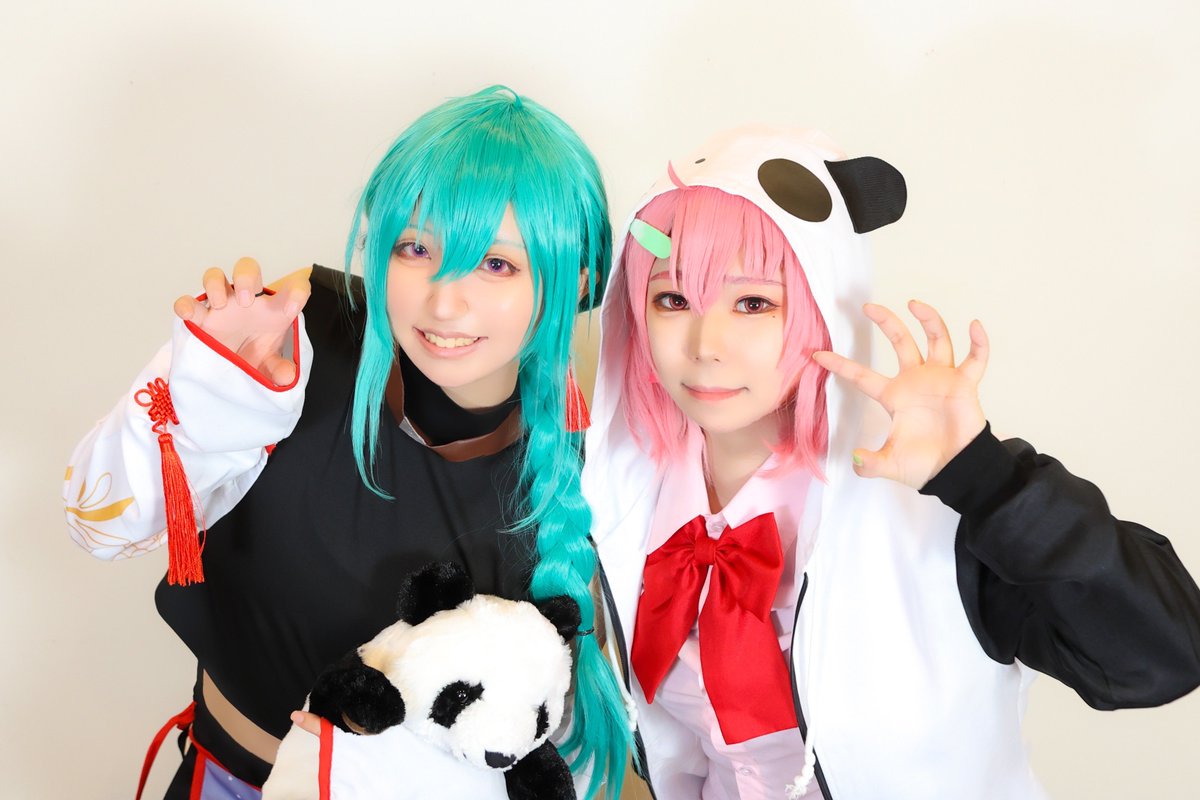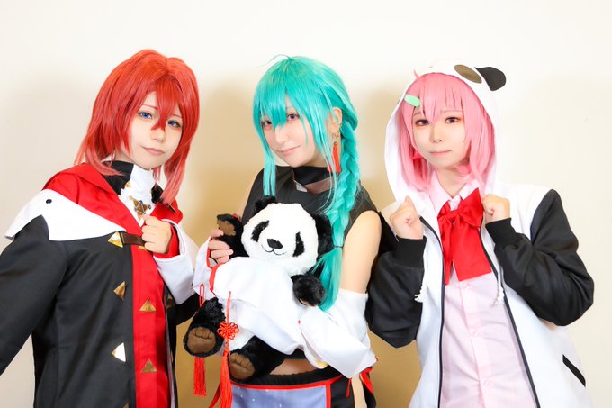 Cosplay 🌈🕒 赤、緑、ピンク♥️💚💗 ⚖️:初霜うね @_Hana_Kage_ さん 🐼:藤花 @fujihanaFuji さん 🎋:東雲ナト photo:@B1xFv さん #かみこす #かみこすKIITO