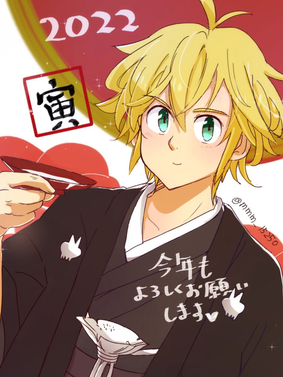 2022年 描き初めメリオダス🎍大罪キャラの着物姿好きです