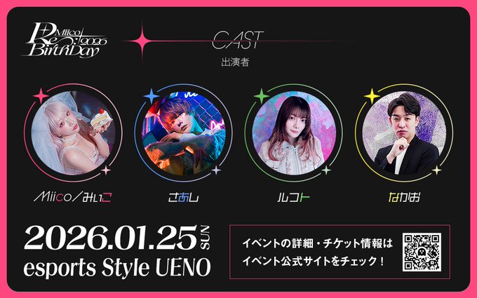 この物語に関わる、 ゲストキャストの方々です🎀 MC なかお(@WHITE_ABSOL ) ゲスト さあし(@Sa_ASHi ) 友情出演 ルフト(@l_u_f_t_3 ) どんなお話になるのか、お楽しみに✨️ ▶ miicorebirthday.com #MiicoReBirthDay2026
