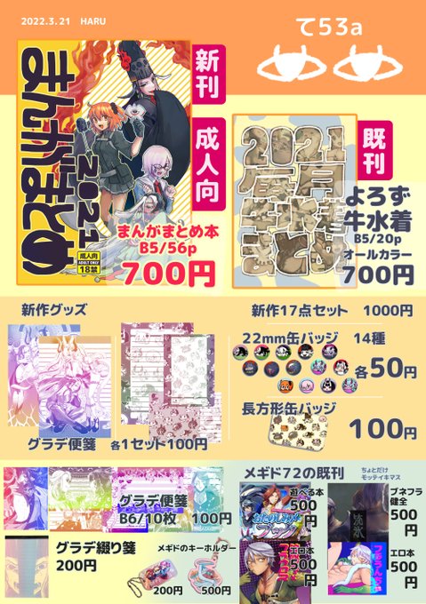 22 19 春コミ るーしこ リンボー舞踊会! て53a お品書きです!よろしくお願いします! 22/03/17 23:52
