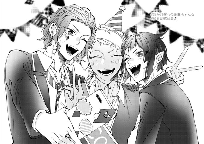 カリムくんが入部してきたとき絶対軽音部歓迎会やったでしょ……カリムくんは人生初めてできた”先輩”にわ~い!ってなってたでしょ……見たい……の絵