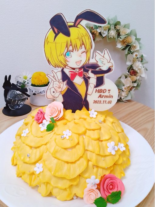 アルミン‼️改めてお誕生日おめでとう‼️今年はうさミンのドールケーキを作りました!🎂🐰🎀大好きだよ💛💛 #アルミン生誕祭2022 #アルミン誕生祭2022 #アルミン・アルレルト生誕祭2022