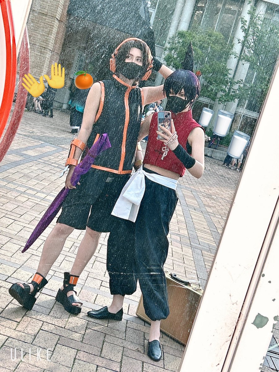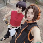 今日はシャーマンキングの麻倉葉くんでした🧡 衣装と小道具作り楽しかった👍🏻 てかなんだかんだで朝まで作ってたから寝不足なんよwww でもジャンオフで同チームがじゃんけん大会優勝したから1day無料貰えた✌️さくら餅チームの方ありがとうございました☺️ 後ろは蓮のケツ😙 #アコスタ岸和田カンカン