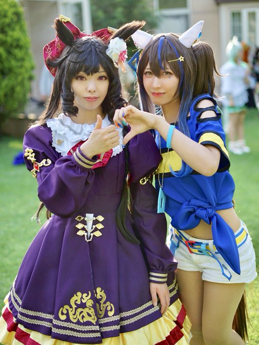 声優のお2人のライブのオフショ👍💙 実は我々5月に同じことをしていたという…! ヘリオス @aoao_hukin_cos ルビー @mmooii95 撮影 @nagasaki600 #230527アドヴァンスステークス